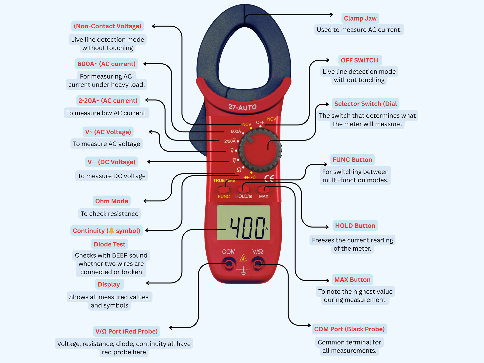 Clamp meter और NCV mode